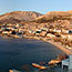 Beautiful bay, protected on the boats, scattered houses -